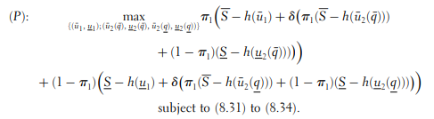 These optimal continuations of the contract for the second period being defined, we can now move backward to solve for the optimal long-term contract. Taking into account the expressions above, the principal’s problem (P ) can be rewritten as
