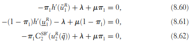 We index the solution to this problem with a superscript R meaning renegation-proof. Now we denote the respective multipliers of the two constraints (8.58) and (8.59) by λ and µ. The corresponding first-order conditions obtained by optimizing with respect to