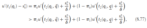 Remark: It should be also noted that this double deviation along both the saving and the effort dimension introduces a positive slack into the second-period incentive constraint. Indeed, the right-hand side of (8.76) is strictly greater than what the agent can get by not saving at all and exerting no effort, namely