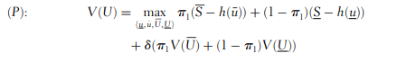 where we make explicit the dependence of the solution on the level of promised utility U .
