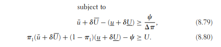 where u˜(U ) is the random current utility level. Hence, the participation constraint (8.80) is necessarily binding.
