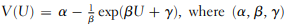 belongs to R3 with β ≥ 0. Note that V (·) is then decreasing (V‘(U ) = − exp(βU + γ) ≤ 0) and concave (V”(U ) = −β exp(βU + γ) ≤ 0).