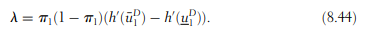 Let us denote the respective multipliers of the constraints (8.79) and (8.80) by h and µ. Assuming the concavity of the value function V (·),17 the optimizations with respect to U¯ and U yield respectively