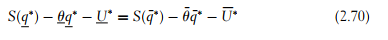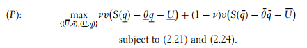 Inserting the values of U and U¯ that were obtained from the binding con- straints in (2.21) and (2.24) into the principal’s objective function and optimizing with respect to outputs leads to qSB = q∗, i.e., no distortion for the efficient type, just as in the case of risk neutrality and a downward distortion of the inefficient type’s output q¯SB < q¯* given by