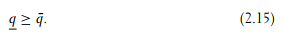Independently of the principal’s preferences, incentive compatibility alone implies that the production level requested from a θ¯-agent cannot be higher than the one requested from a θ-agent. We will call condition (2.15) an implementability condition. Any pair of outputs (q, q¯) that is implementable, i.e., that can be reached by an incentive compatible contract, must satisfy this condition which is here necessary and sufficient for implementability.