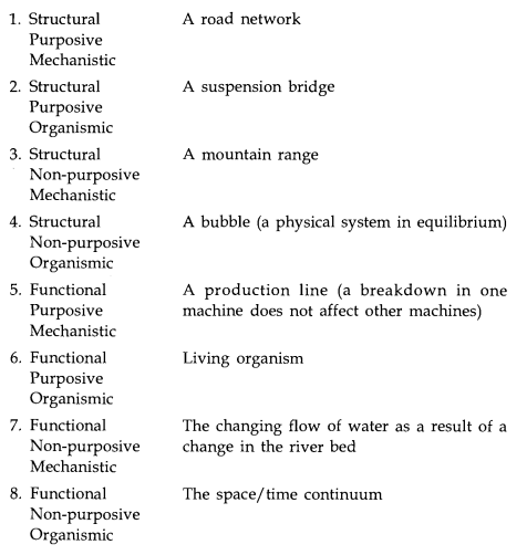 Systems obeying the principle of connectivity can be assigned to either of two alternatives: the not densely connected or mechanistic and the densely connected or organismic. If an intervention into a system, with removal of parts and breaking of connections, produces no change of the remaining components, it is classified as mechanistic. In an organismic system the change of a single connection affects all others. A recapitulation is outlined in Table 3.4.