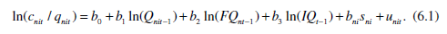In these analyses, the unit of time is a week. The variables Q, FQ, and IQ are the cumulative pizza production through the end of the previous week. The lagged cumulative output was used on the right-hand side of Eq. (6.1) because cumulative output measures experience acquired as a result of past output.
