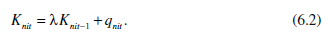 Equation (6.2) allows for the possibility that knowledge depreciates over time by including the parameter λ. As in our discussion of the shipyard results, if λ = 1, the accumulated stock of knowledge is simply equal to lagged cumulative output, the conventional measure, and there is no evidence of depreciation. If λ< 1, there is evidence of depreciation: recent output is a more important predictor of current productivity than past output.