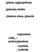 In the macrohierarchy, where the gravitational forces have the evolutionary role, the following entities of astronomy are found.