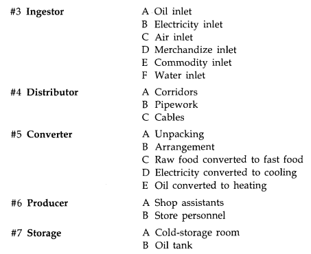 When applying GLS theory to a problem of the real world a key task is to identify the components of the 20 essential subsystems for the object, within its level. The example below shows how an identification can be established for a supermarket.