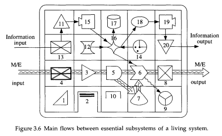 Some of the main features of GLS theory have now been outlined. This theory, itself too far-reaching to be presented in detail here, has many practical applications. For this purpose the chart of living systems symbols is used when depicting system flows between the twenty essential subsystems, as shown in Figure 3.6.