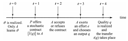 The timing of contracting with adverse selection being followed by moral hazard is illustrated in figure 7.1.