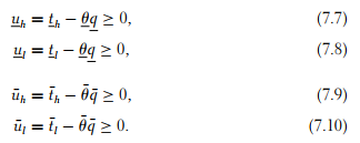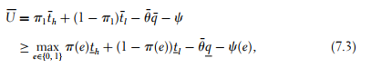 Finally, the following limited liability constraints must be satisfied. For the efficient type [(7.7), (7.8)] and for the inefficient type [(7.9), (7.10)]: