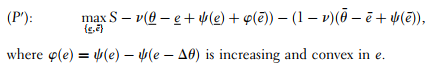 The government wants to maximize the social welfare function vG(U¯) + (1 − v)G(U ), where G(·) is increasing and concave, (G‘ > 0 and G“ < 0). The principal’s problem is thus