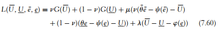 We let the reader check that the relevant incentive constraint is, as usual, that of the most productive type θ¯. Denoting the multiplier of the budget constraint (7.59) by µ and the multiplier of the incentive constraint (7.57) by λ, we can write the Lagrangian of the problem as
