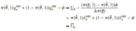 . Similarly, taking into account that a θ¯-agent has a nonzero reservation utility given by U0¯, point BMH corresponds to the ex post utility levels