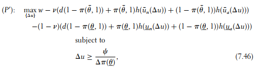 where (7.46) is the low-risk agent’s moral hazard incentive constraint.