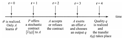 The timing of contracting with adverse selection being followed by moral hazard is illustrated in figure 7.1.