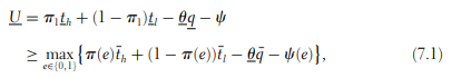 Inducing both types to participate in this contract requires that the following participation constraints are satisfied: