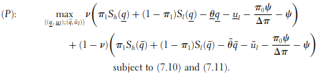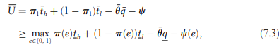 Finally, the following limited liability constraints must be satisfied. For the efficient type [(7.7), (7.8)] and for the inefficient type [(7.9), (7.10)]:
