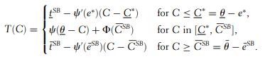 This mechanism should implement precisely the second-best allocation computed above, when the agent finds it optimal to exert effort eSB and e¯SB. Assuming dif-ferentiability of the schedule T(C) at the points CSB and C¯SB, we must have