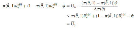. Similarly, taking into account that a θ¯-agent has a nonzero reservation utility given by U¯0, point BMH corresponds to the ex post utility levels