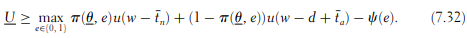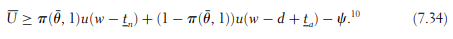 Finally, the following limited liability constraints must be satisfied. For the efficient type [(7.7), (7.8)] and for the inefficient type [(7.9), (7.10)]: