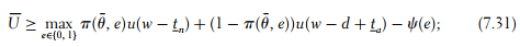 Finally, the following limited liability constraints must be satisfied. For the efficient type [(7.7), (7.8)] and for the inefficient type [(7.9), (7.10)]:
