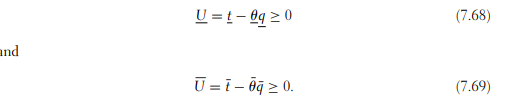 , (7.69), (7.70), and (7.72) are all binding. The first-best output q∗ is still requested when θ realizes. Instead, pro- duction is distorted downward below the first-best when θ¯ realizes. We have