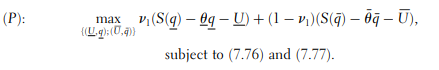 Repeating the analysis of section 4.4, we could easily prove that (7.76) and (7.77) are both binding. This yields the following expressions of the moral hazard ex post rents in each state of nature: