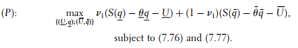 Repeating the analysis of section 4.4, we could easily prove that (7.76) and (7.77) are both binding. This yields the following expressions of the moral hazard ex post rents in each state of nature: