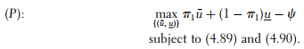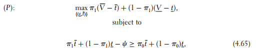Note that the right-hand side of (4.85) is not zero. Except for this nonzero reservation value, the problem is very close to that of section 4.5 after having replaced variables so that the net transfers received by the agent are