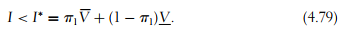 Let us now parameterize projects according to the size of the investment I. Only the projects with positive value V1 > 0 will be financed. This requires the investment to be low enough, and typically we must have