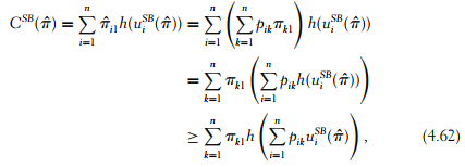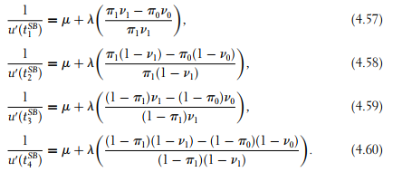 . These new utility levels implement the high level of effort for the information structure π (from the right-hand equality of (4.63)) and make the agent’s participation con-straint binding (from (4.64)). By definition of CSB(π), we have
