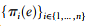 for each value of e. Again, we assume that e can be either 0 or 1, and to simplify we denote π(1) = π.