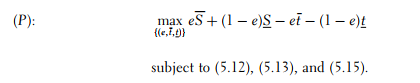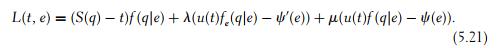 Let us first characterize the solution to the relaxed problem (PR). Denoting the multiplier of (5.20) by λ and the multiplier of (5.19) by μ, we can write the Lagrangian L of this problem as