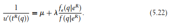 The left-hand side of (5.22) is increasing with respect to tR(q), because u” < 0. Provided that λ > 0, MLRP (here in its strict version for simplicity),