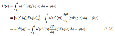 We can rewrite the agent’s expected utility when he receives the scheme {tR(q)} and exerts an effort e as