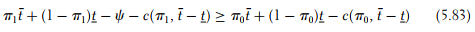 over the monetary payoff t˜ − ψ. In this more general case, we can solve (5.86) explicitly for ΔtSB, and we find that (provided that 1 − π1 − π0 > 0 and that ψ is small enough to ensure existence of the solution)