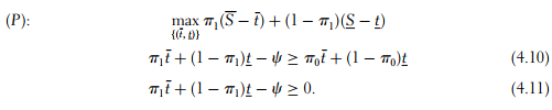 With risk neutrality the principal can, for instance, choose incentive compat-ible transfers t¯ and t, which make the agent’s participation constraint binding and leave no rent to the agent. Indeed, solving (4.10) and (4.11) with equalities, we immediately obtain
