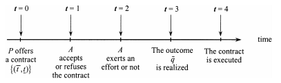 The timing of the contracting game under moral hazard is summarized in figure 4.1.