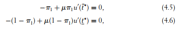 Denoting the multiplier of this participation constraint by μ and optimizing with respect to t¯ and t yields, respectively, the following first-order conditions: