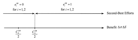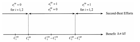 We have already derived the second-best cost C2SB of implementing two posi- tive efforts in section 5.2.4. Had the principal chosen to implement a positive effort on task 1 only, the second-best cost of implementing this effort would instead be