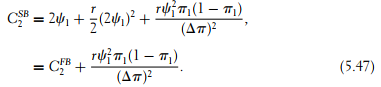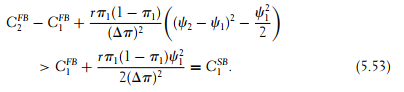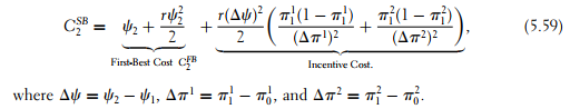 . Success and failure on each task being independent events, the incentive costs of inducing those two independent risks in the agent’s payoff just add up. These costs represent the second bracketed term on (5.59). The above expression of C2SB will be used throughout the next subsection.