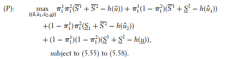 Proposition 5.7: When tasks are substitutes, the solution to (P) is such that the local incentive constraints (5.55) and (5.56) and the participation constraint (5.58) are all binding. The global incentive constraint (5.57) is always slack.