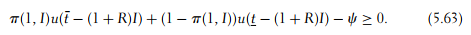 The first inequality uses t¯ > t, and the fact that uf·g is concave. The equality uses the fact that (5.62) is binding if the effort is induced at minimal cost. Finally, the second inequality uses the assumption (5.66). Therefore, (5.64) is more stringent than (5.65). (5.64) may be the more constraining of the incentive constraints when both investment and effort are nonobservable. In this case, the contract offered when I˜ is contractible, namely