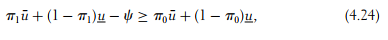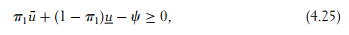 are simultaneously obtained as the solutions to the system of four equations (4.24), (4.25), (4.28), and (4.29). Multiplying (4.28) by π1 and (4.29) by 1 − π1, and then adding those two modified equations, we obtain