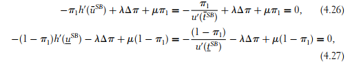 implying that the right-hand side of (4.31) is strictly positive since u“ < 0. Using that (4.24) and (4.25) are both binding, we can immediately obtain the values of u(t¯SB) and u(tSB) by solving a system of two equations with two unknowns.
