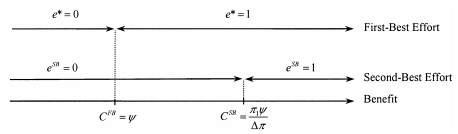 Figure 4.3: First-Best and Second-Best Efforts with Moral Hazard and Limited Liability