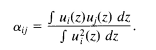 This expression tells the probability that a member of population i will encounter a member of population j at a particular resource position averaged over all resource positions divided by the probability that it will encounter a member of its own population at each position. Thus the competition coefficient tells the probability of inter-population interaction in resource acquisition relative to intra-population interaction.